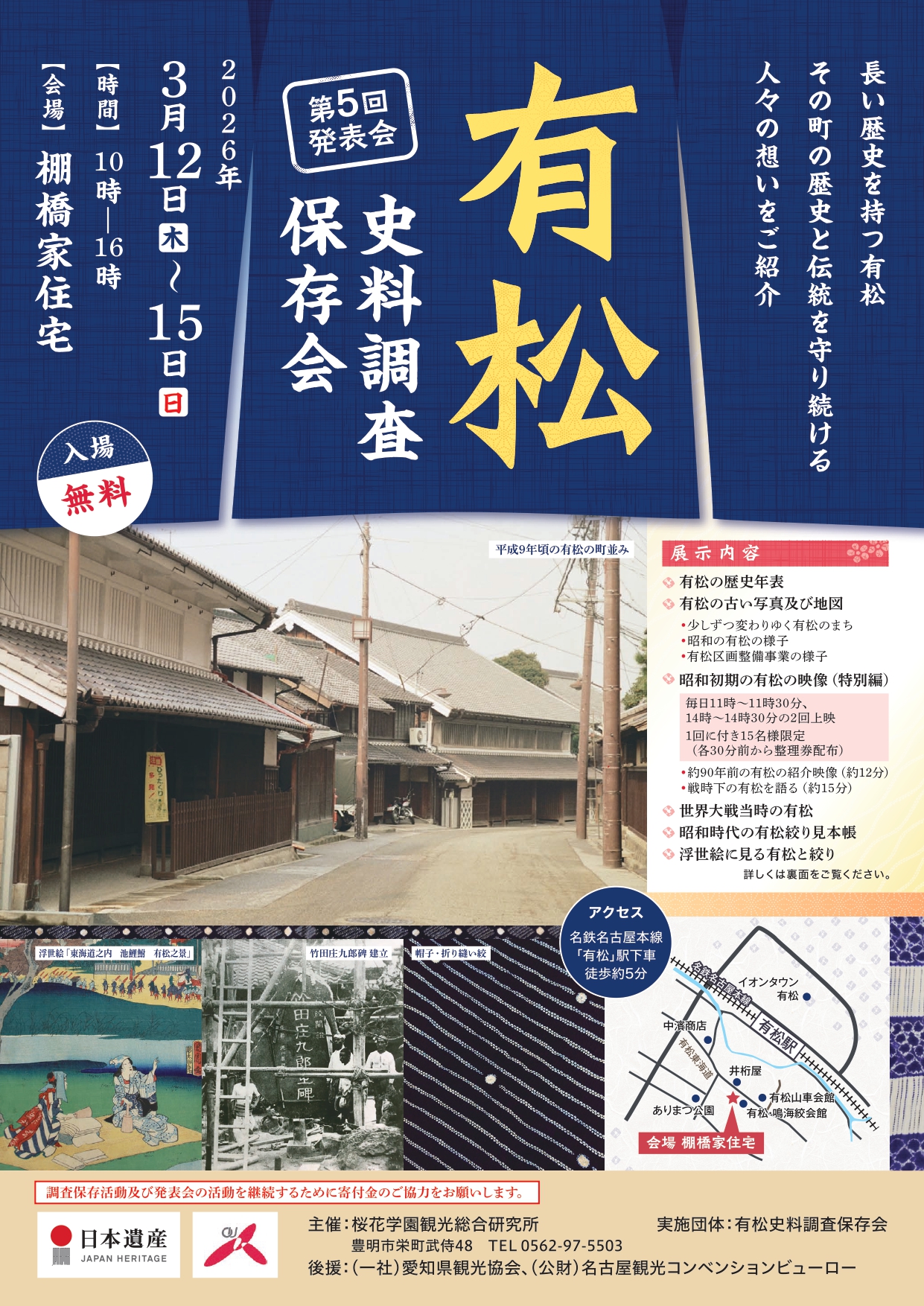 【桜花学園観光総合研究所】有松史料調査保存会 第5回発表会の開催について