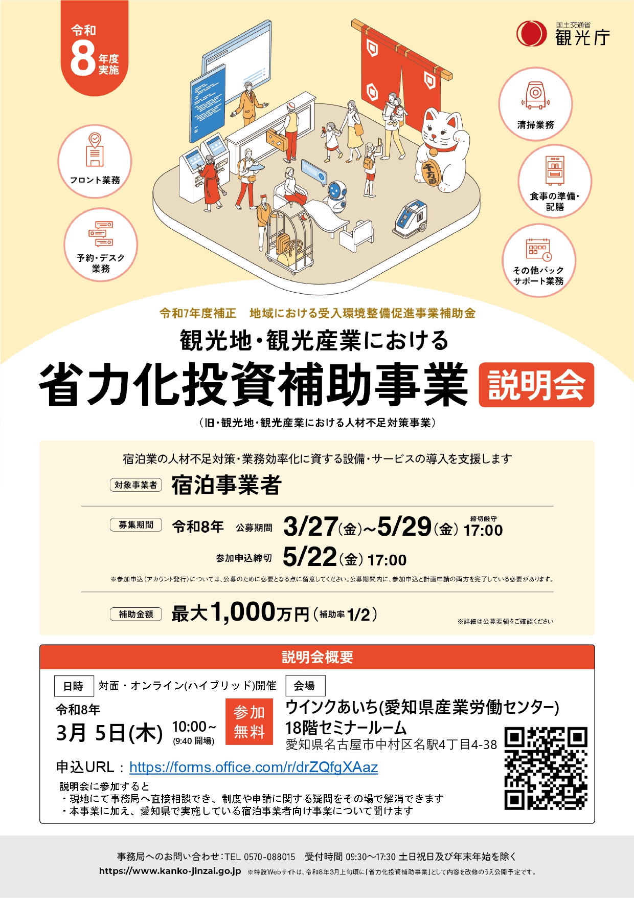 【観光庁主催】観光地・観光産業における省力化投資補助事業の説明会の開催について